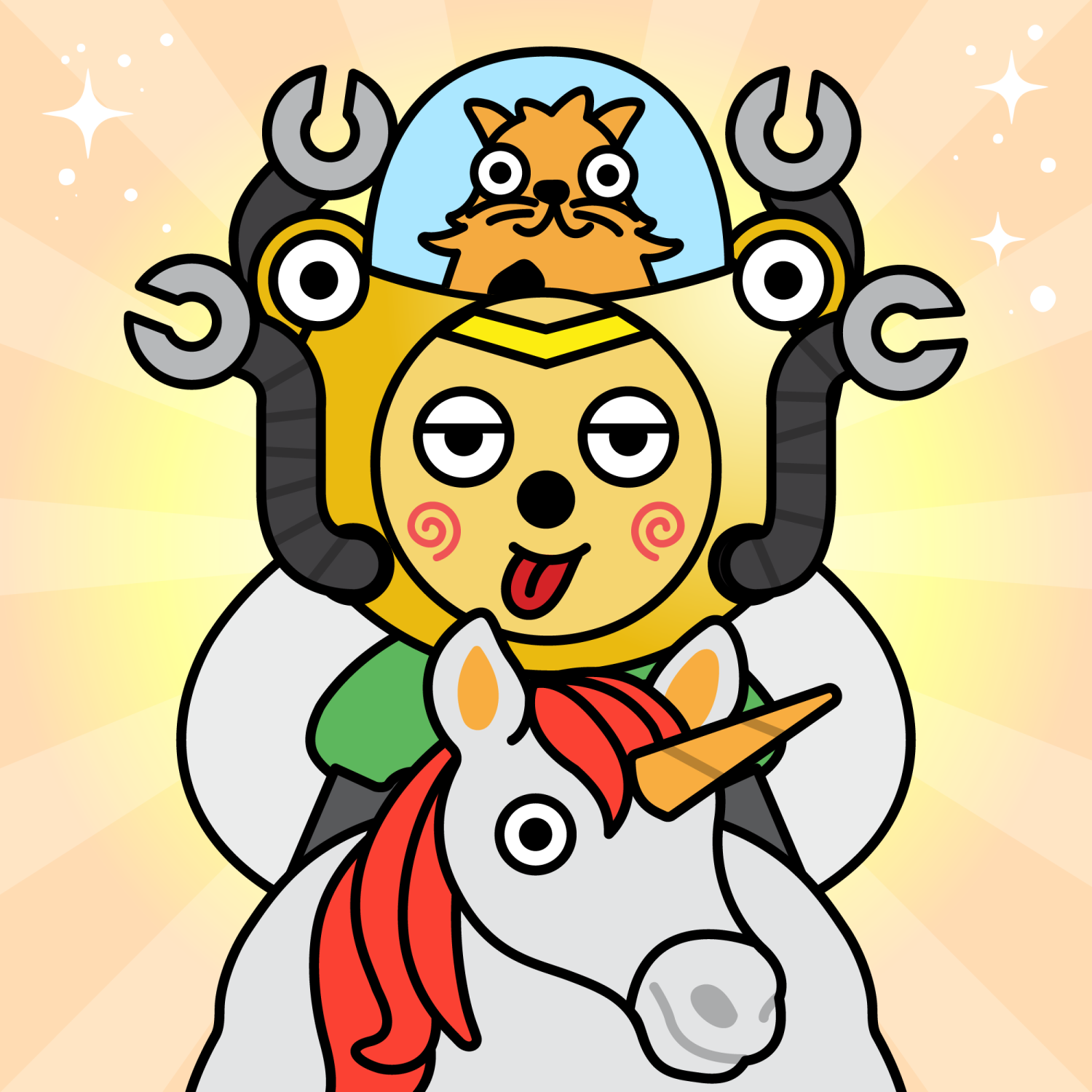 ArmsWhite33.38%BackgroundInfinity Sunrise0.99%CheekSpiral16.18%EyesJudgemental4.78%Face ColourLemon23.14%HairHeroic0.19%Head MiddleGold Robot0.05%Head TopCryptoKitties1.00%Left HandGrey28.85%MouthTongue Out2.06%NoseBlack3.70%Right HandGrey28.85%ShirtPlain Green9.09%TribeBuilder19.99%VehicleGrey Unicorn0.05%