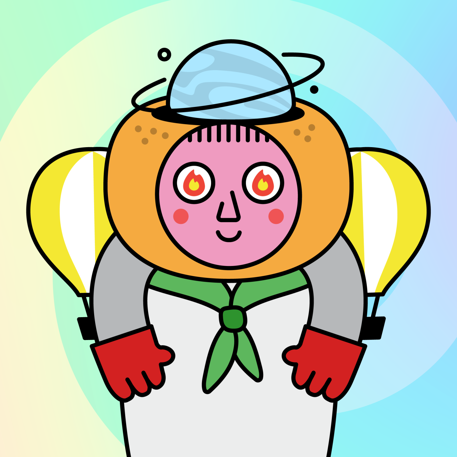 ArmsGrey31.22%BackgroundOcean3.29%CheekRosy23.73%EyesFire1.79%Face ColourStrawberry46.38%HairThin Fringe10.61%Head MiddleOrange0.91%Head TopWater1.36%Left HandRed32.25%MouthSmile21.06%NoseTriangle21.33%Right HandRed32.25%ShirtGreen Bandana1.31%Special ToolYellow Hot Air Balloons0.51%TribeDreamer19.99%