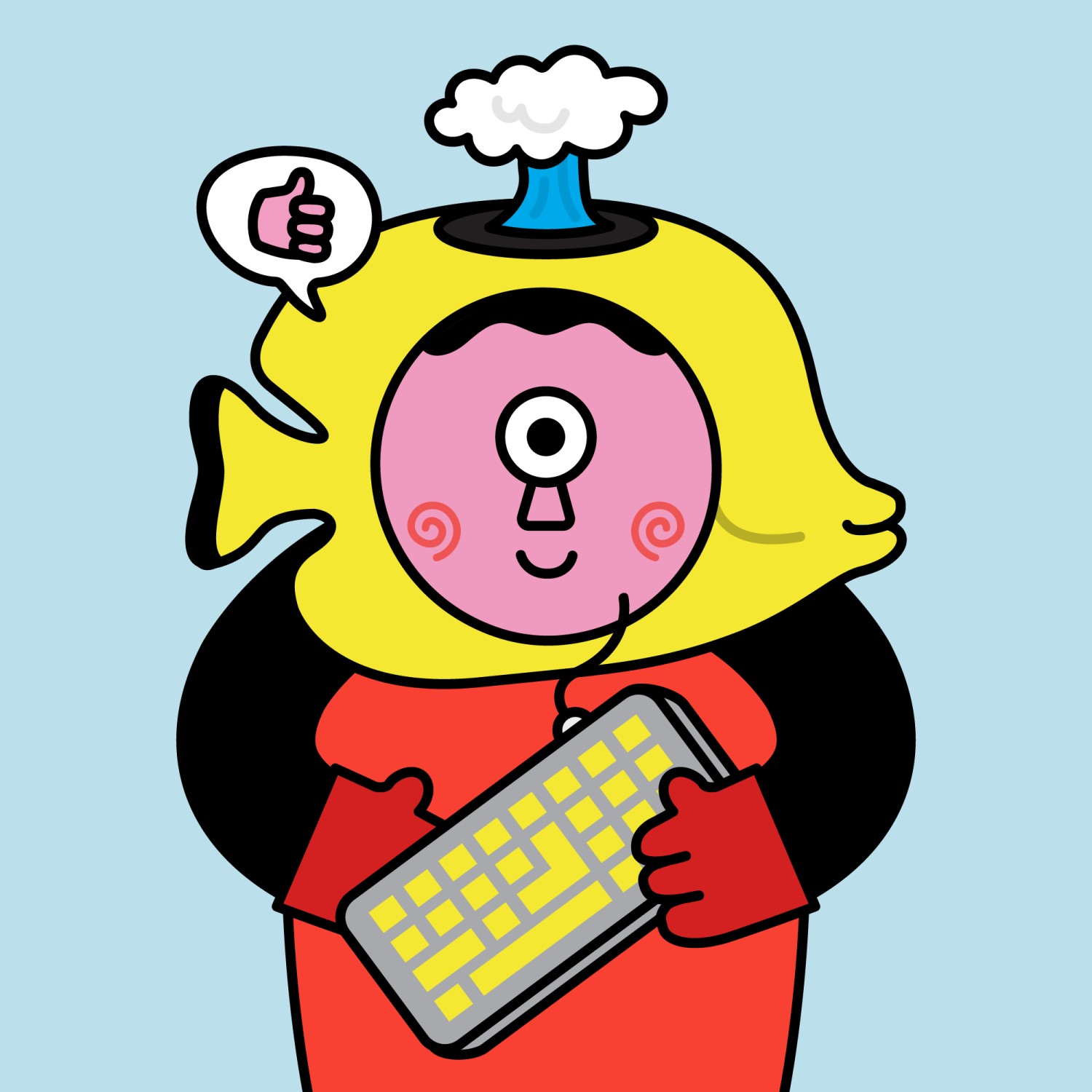 ArmsBlack33.28%BackgroundSky13.97%CheekSpiral16.18%DialogueThumbs Up11.09%EyesOne14.86%Face ColourStrawberry46.38%HairV-Shaped9.72%Head MiddleYellow Tang1.55%Head TopSmoke1.37%Left HandRed32.25%MouthSmile21.06%NoseTriangle21.33%PropKeyboard0.64%Right HandRed32.25%ShirtPlain Red7.34%TribeNeo-Capitalist20.02%