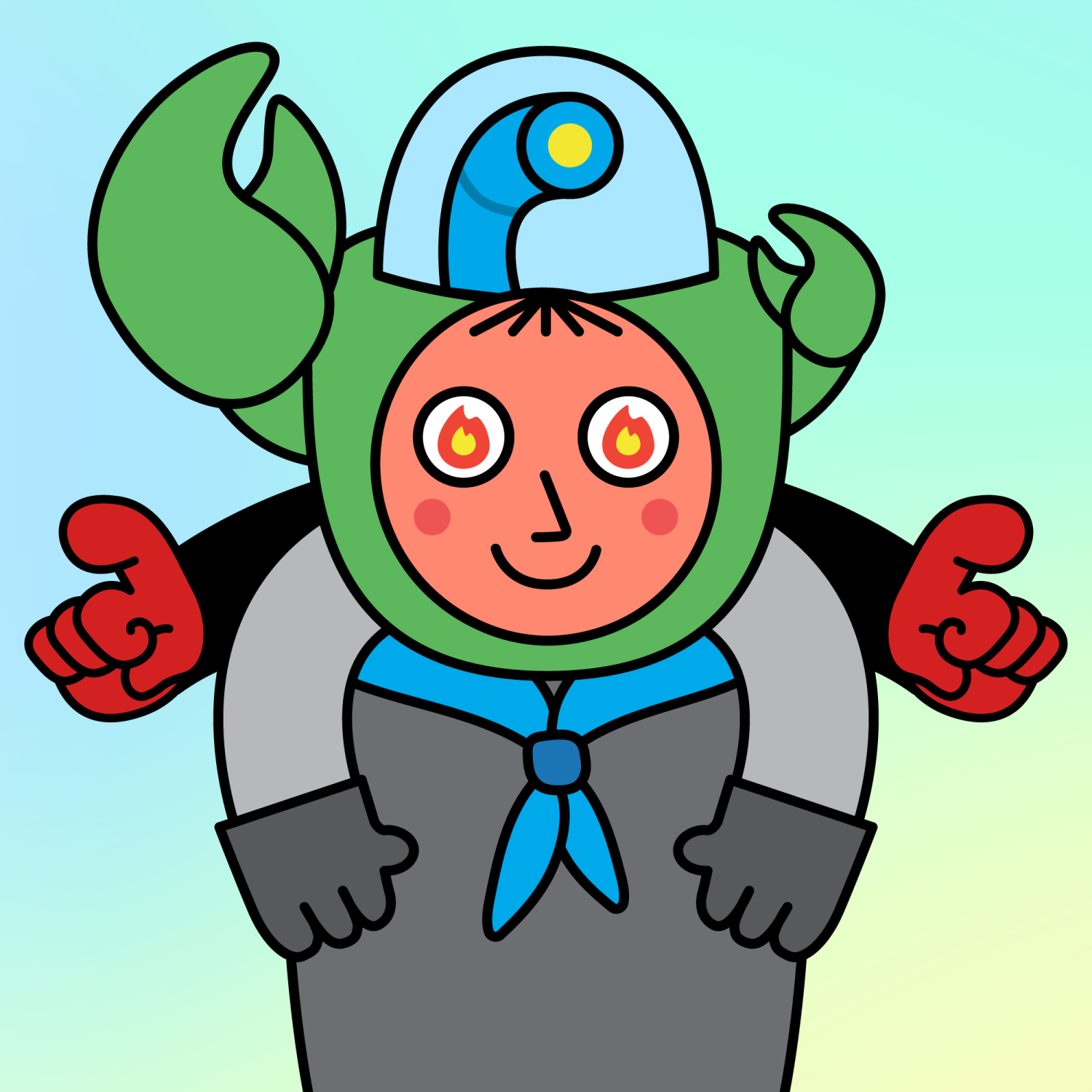 ArmsGrey31.22%BackgroundRainforest4.70%CheekRosy23.73%EyesFire1.79%Face ColourOrange22.69%HairStraight Fringe9.68%Head MiddleBig Green Claw0.89%Head TopBlue Periscope1.96%Left HandGrey28.85%MouthBig Smile19.64%NoseSharp23.13%Right HandGrey28.85%ShirtBlue Bandana0.86%Special ToolPointing0.66%TribeBuilder19.99%