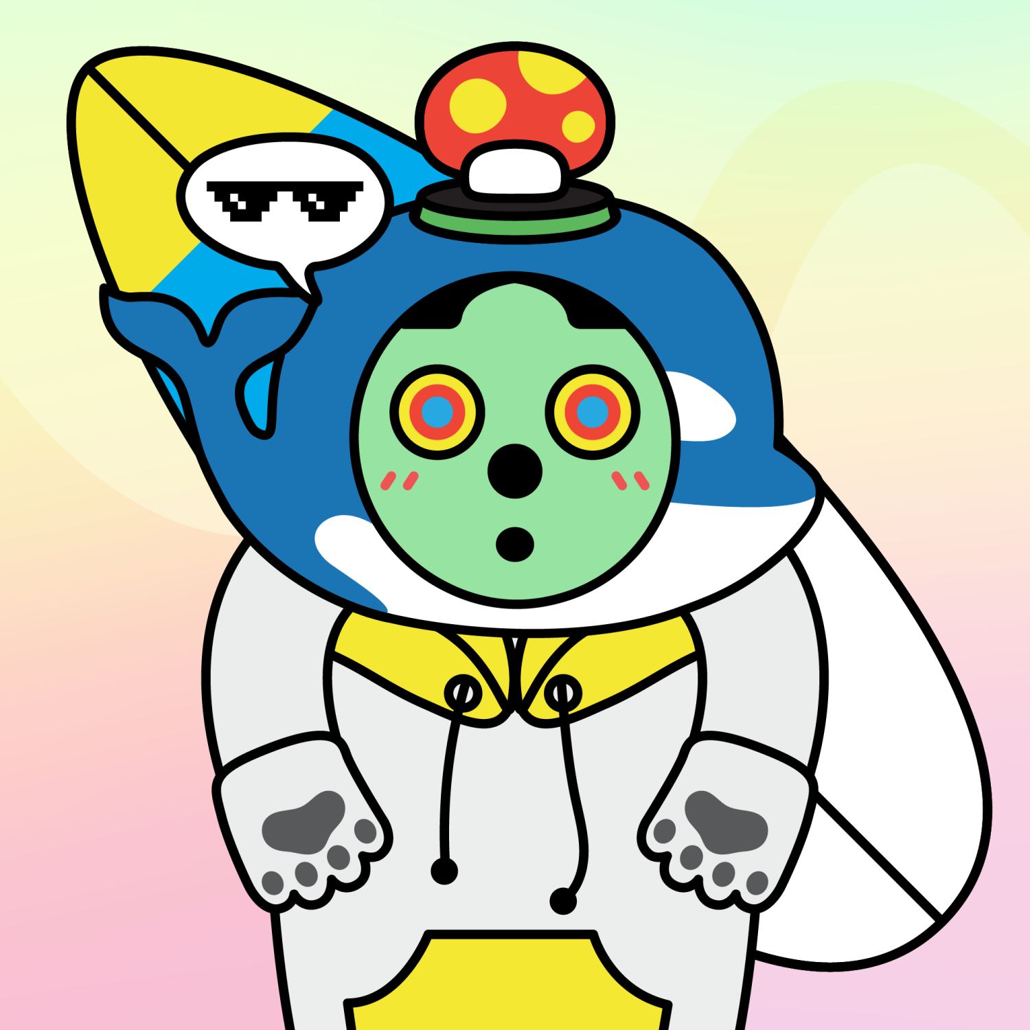 ArmsWhite33.38%BackgroundDusk3.29%CheekBlush3.68%DialogueThug3.31%EyesHypno1.47%Face ColourAlien3.81%HairCentre Parting10.07%Head MiddleBlue Killer Whale0.27%Head TopMushroom0.39%Left HandWhite Paw1.74%MouthPouty10.05%NoseBlack3.70%Right HandWhite Paw1.74%ShirtYellow Hoodie1.41%Special ToolBlue Board0.34%TribeNeo-Capitalist20.02%