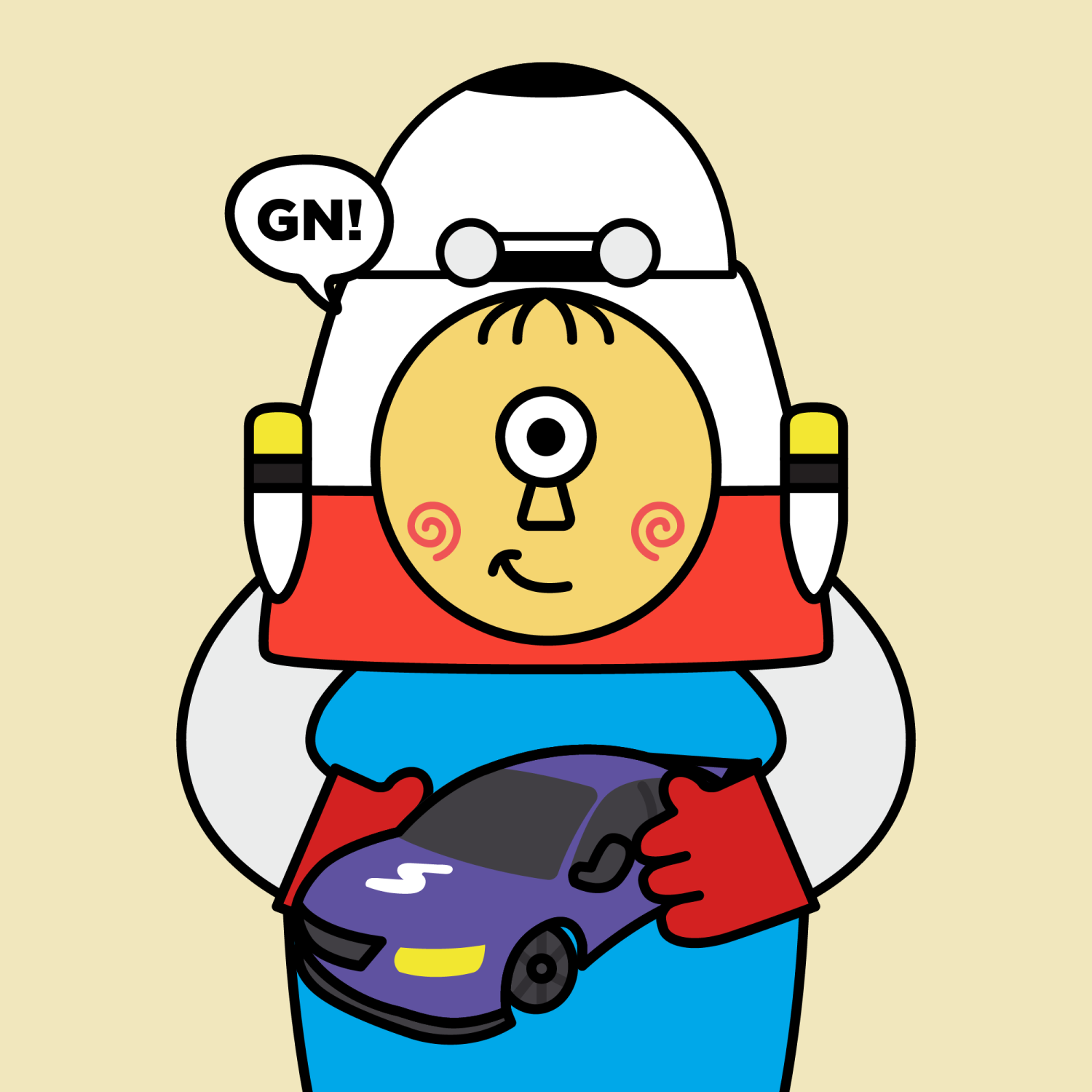 ArmsWhite33.38%BackgroundEarth11.50%CheekSpiral16.18%DialogueGN!10.28%EyesOne14.86%Face ColourLemon23.14%HairSparse Fringe10.04%Head MiddleRed Rocket2.16%Head TopWhite Robot0.32%Left HandRed32.25%MouthSmirk19.13%NoseTriangle21.33%PropREVV Toy0.64%Right HandRed32.25%ShirtPlain Blue6.31%TribeAngel19.99%