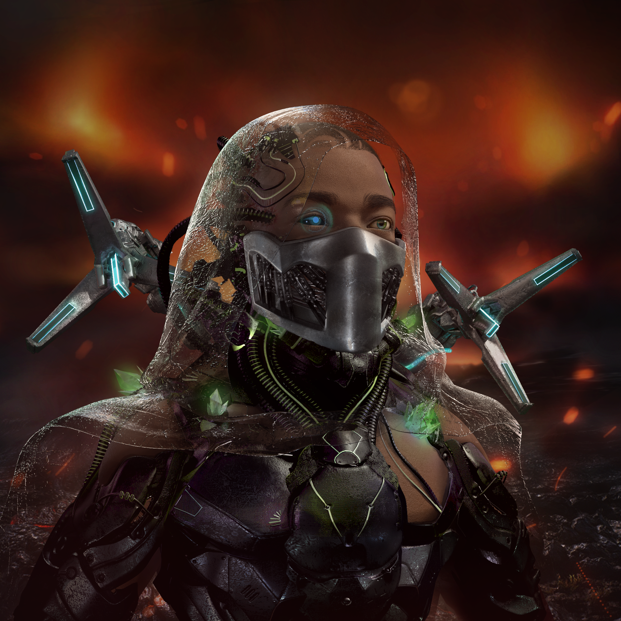 Black And Green Cyborg Body