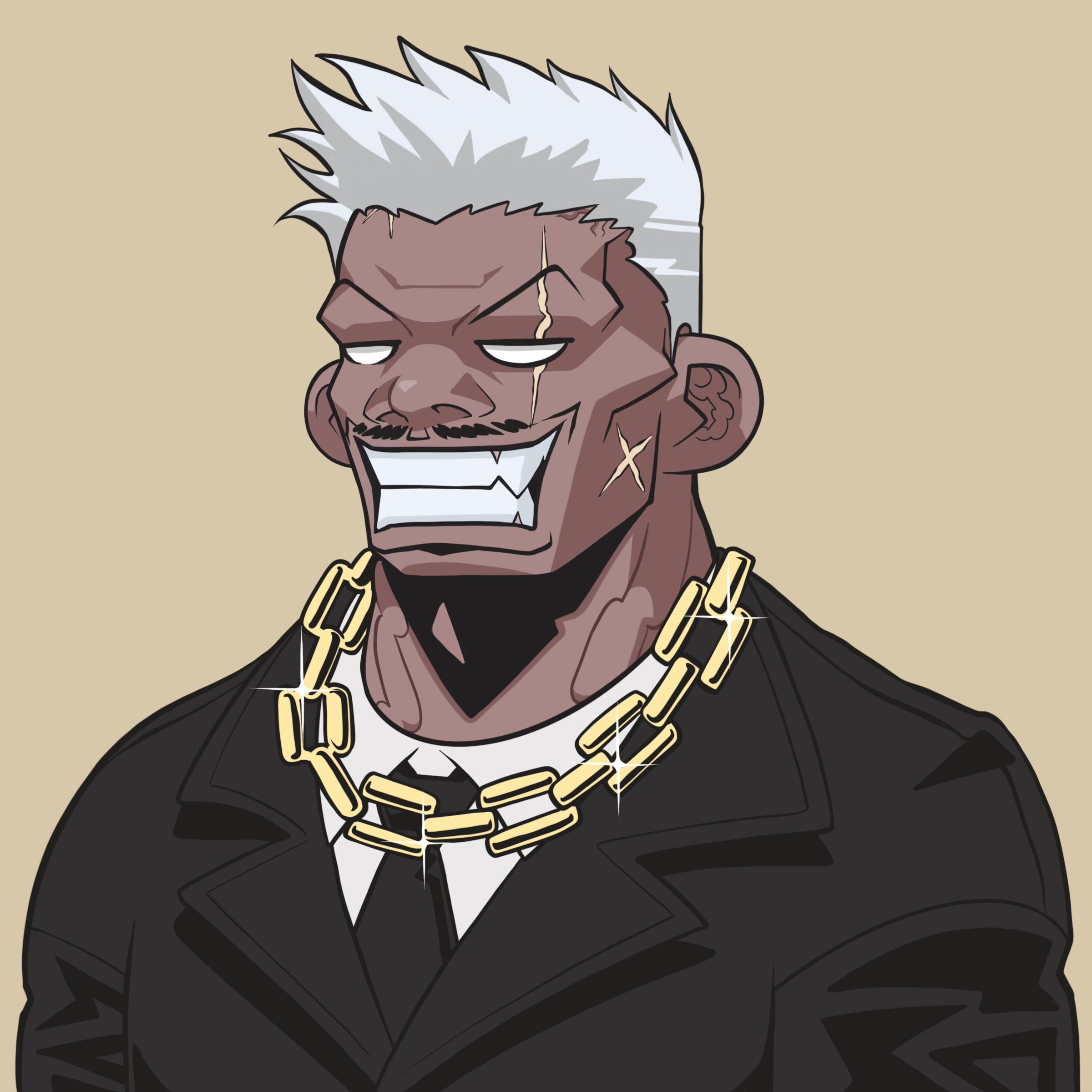 golden chain with black suit