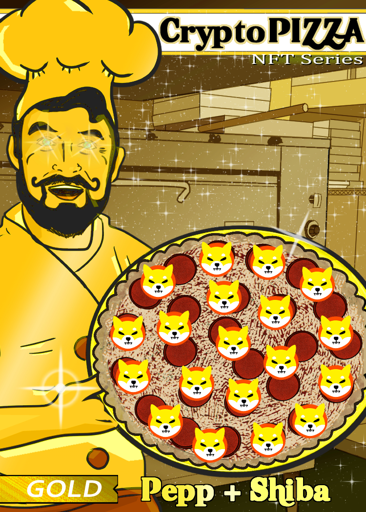 You're starving for some gains! Well come on in to the legendary Crypto pizzeria and order yourself a thin crust pepperoni and Bitcoin pizza. A pure classic! Just like you remember. Holding this NFT gives you +10% SHIBA HODL power. Gold Series = 3